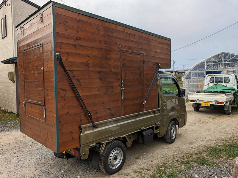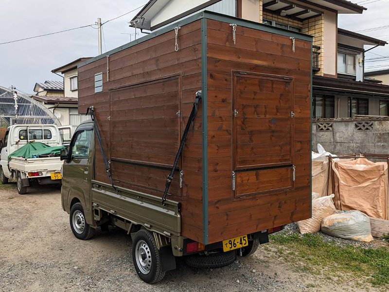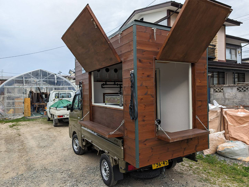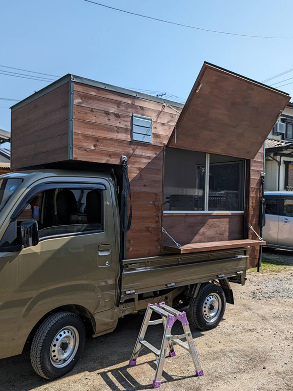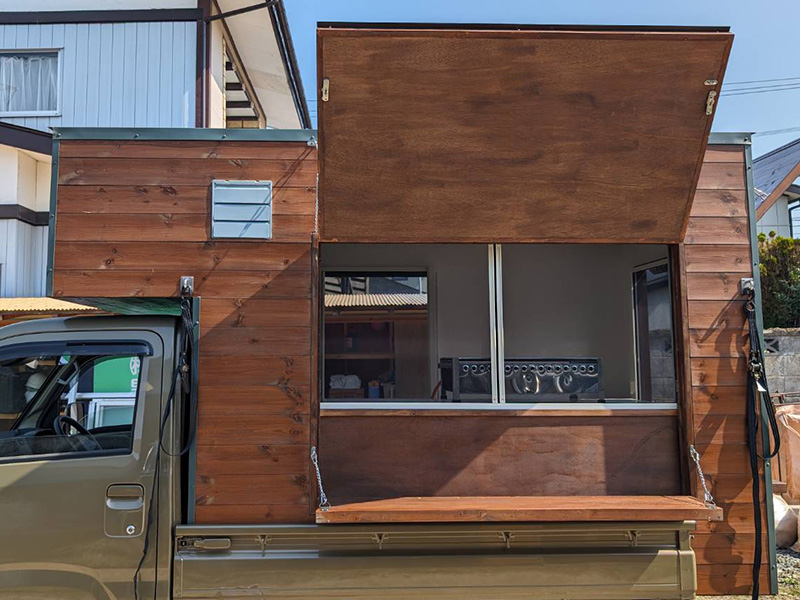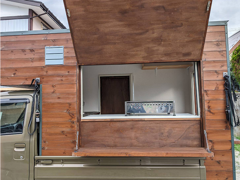 造作 軽トラ キッチンカー 造作 2025.10.20 軽トラ キッチンカー 造作 キッチンカーの造作は初めてですが、頼まれたら断れない性格ですので造作にチャレンジです。 使い勝手(収納、とオープン)はオーバータイプで即開店可能としました。 軽トラのあおりフックを利用したタイダウン留めとし安全に運行できるように… 商品受け渡しの高さや材料、調理器具の保管、排煙装置や保健所基準に… 長く使えるよう強度を上げるよう角にはフレーム仕様としました。 キッチンカー や その他木工造作 をお考えの方はお気軽に御相談ください。 Post Share RSS 造作机 前の記事 縁側天井張り替え 次の記事